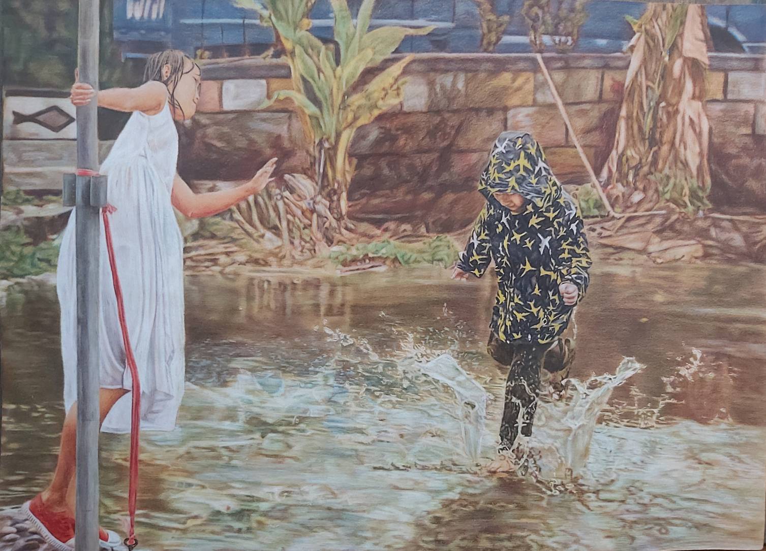 鍾岑書以作品「貓」摘取銀獎;用色鉛筆細緻描摹貓的神態,透過牠的雙眸彷彿映照出貓對自由世界的想望,玻璃窗上滑落的水珠恰巧對應貓落寞的神情,更顯其寂寥的感懷。