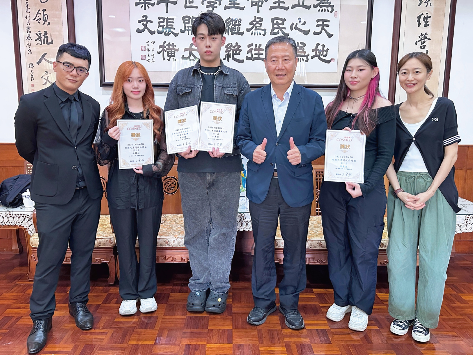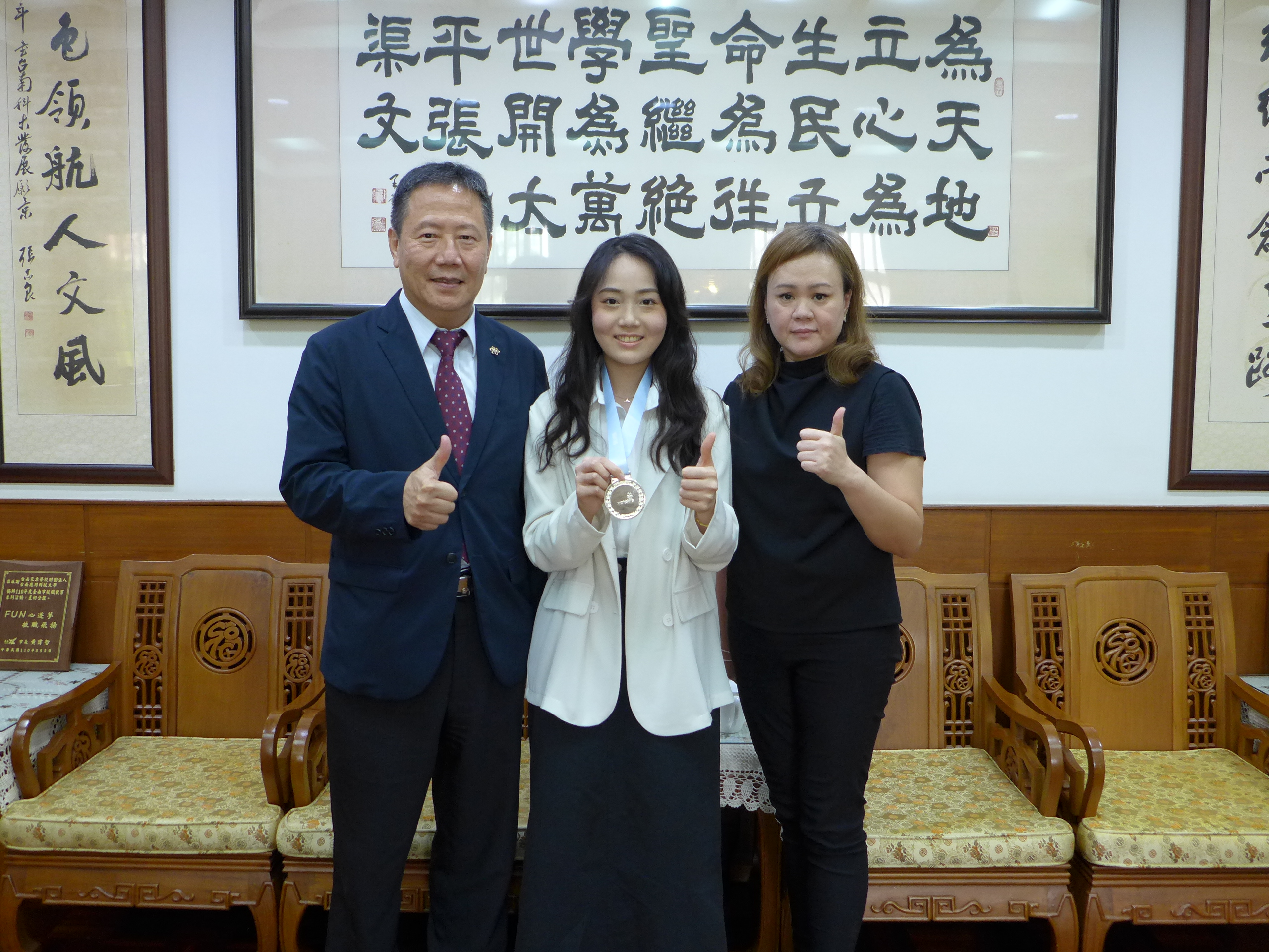 本校另有5位學生,熱愛服務、具有專精並勇於承擔責任,榮獲中國青年救國團111年大專優秀青年,獲獎同學分別是視傳系賴韋丞、養生系曹瑄文、商設系陳冠宇、美術系魏廷宸和許珉瑄。其中視傳系賴韋丞同學擔任第19屆學生會會長,辦理多項校際性、全校性活動,積極進取,認真負責,並代表學校接受全國表揚。