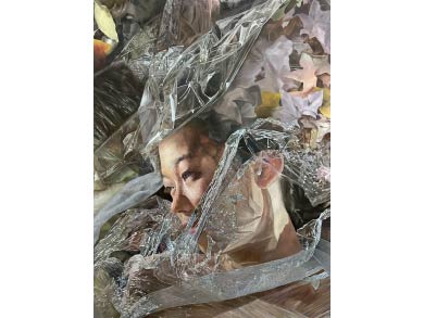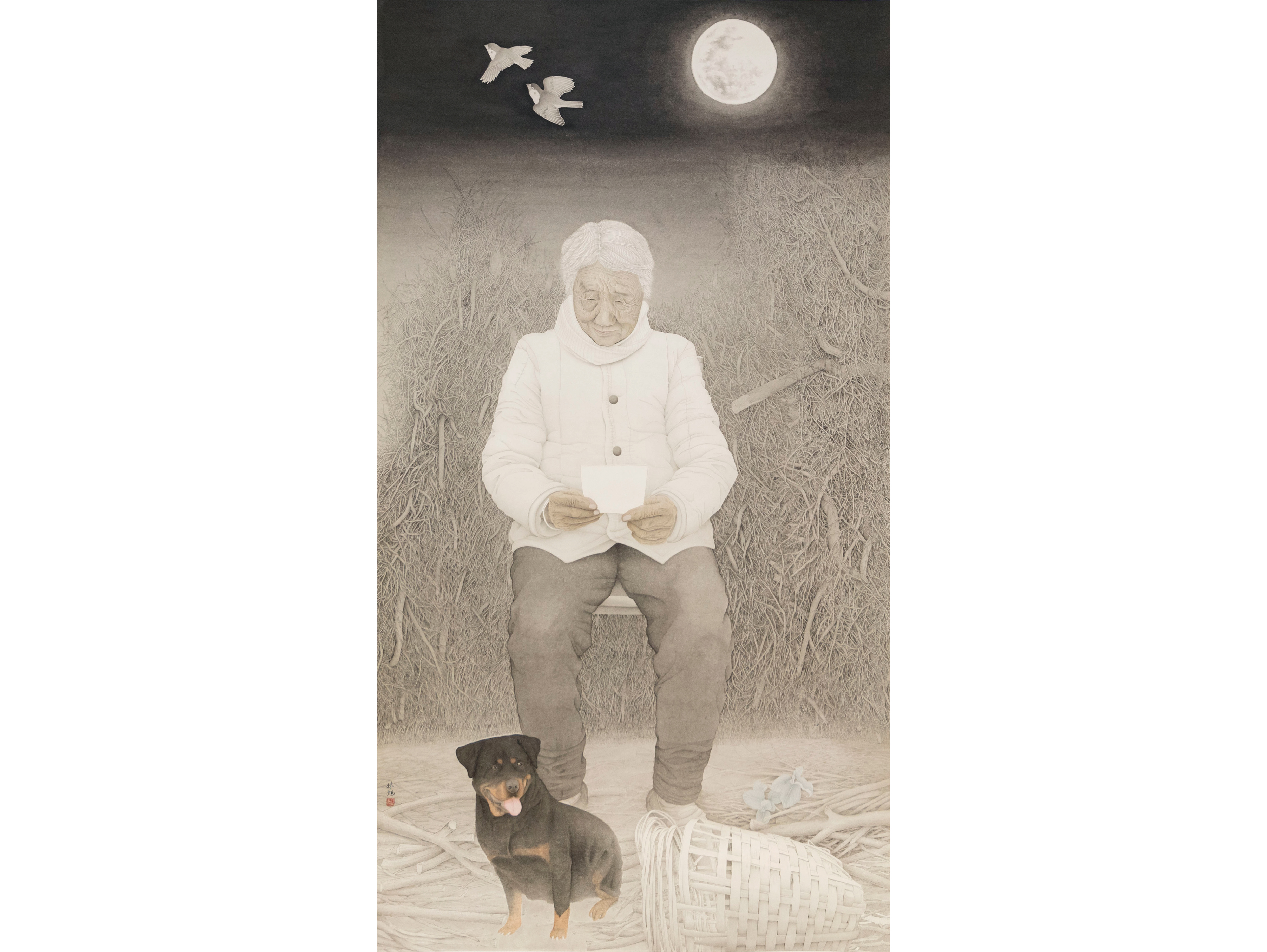 〈涕零如雨〉則是以木刻版畫做為表現形式,利用雕與刻重複性的動作,呼應個人感情世界中,雙方之間刻苦銘心的回憶,並且印證在那些斤斧鑿痕裡,就像經過光物理作用的相片那樣地顯現,卻又隨著時間流逝,化作一股清風隨之而去逐漸淡忘。