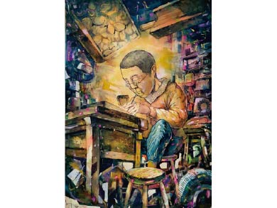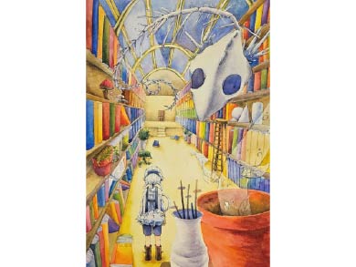 陳怡安的作品「夢色」榮獲金獎;將水彩自由奔放的特質發揮得淋漓盡致,少女的浪漫情懷透過層疊交錯的畫面如實呈現,引領觀者走入其夢幻情境裡,其運用自如的水彩技法與紮實的描繪功力令人激賞。