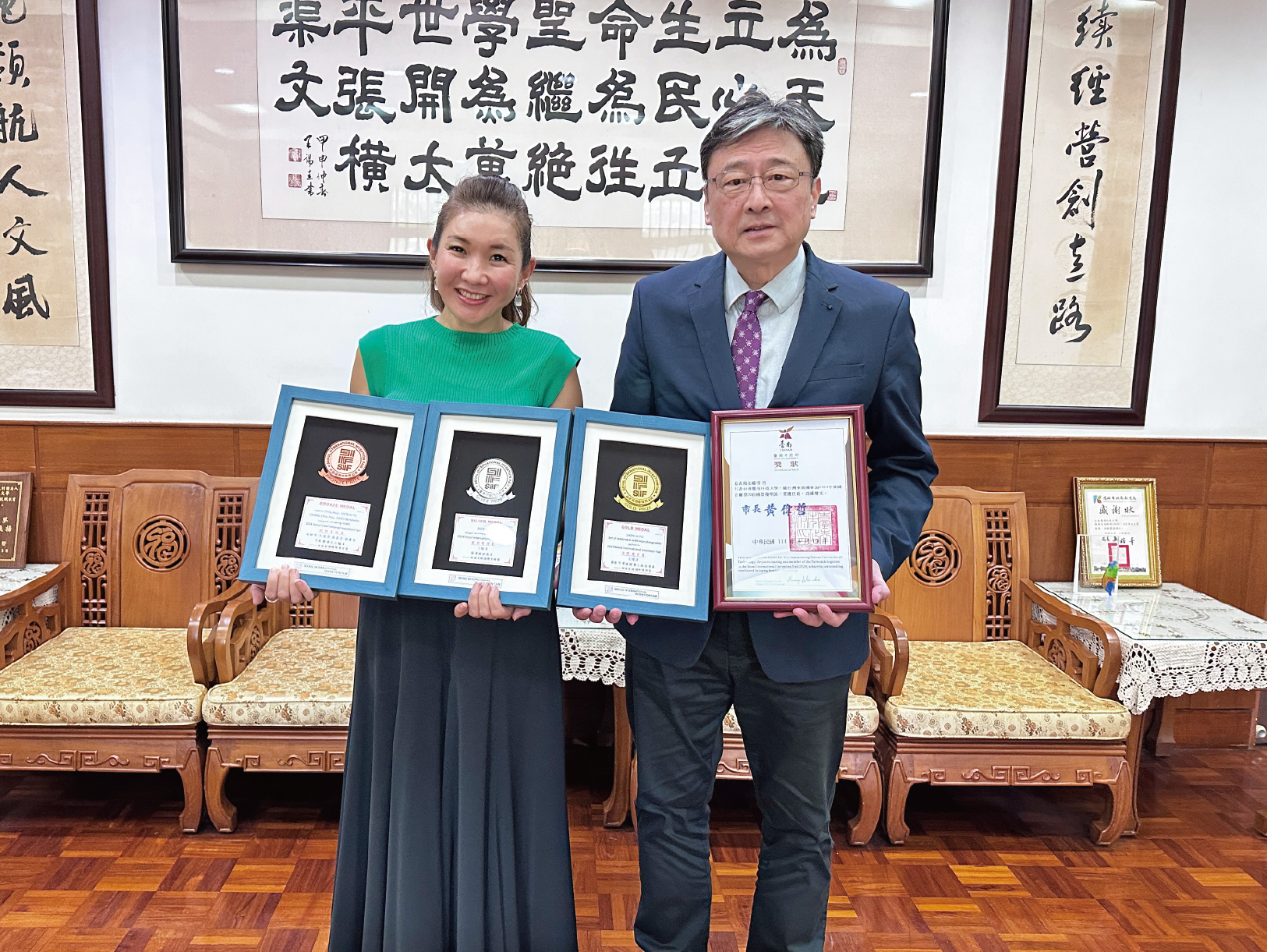 台南應用科技大學餐飲系 張淑禎助理教授以歷年的專利創新 榮獲國際發明家獎並獲總統府接見