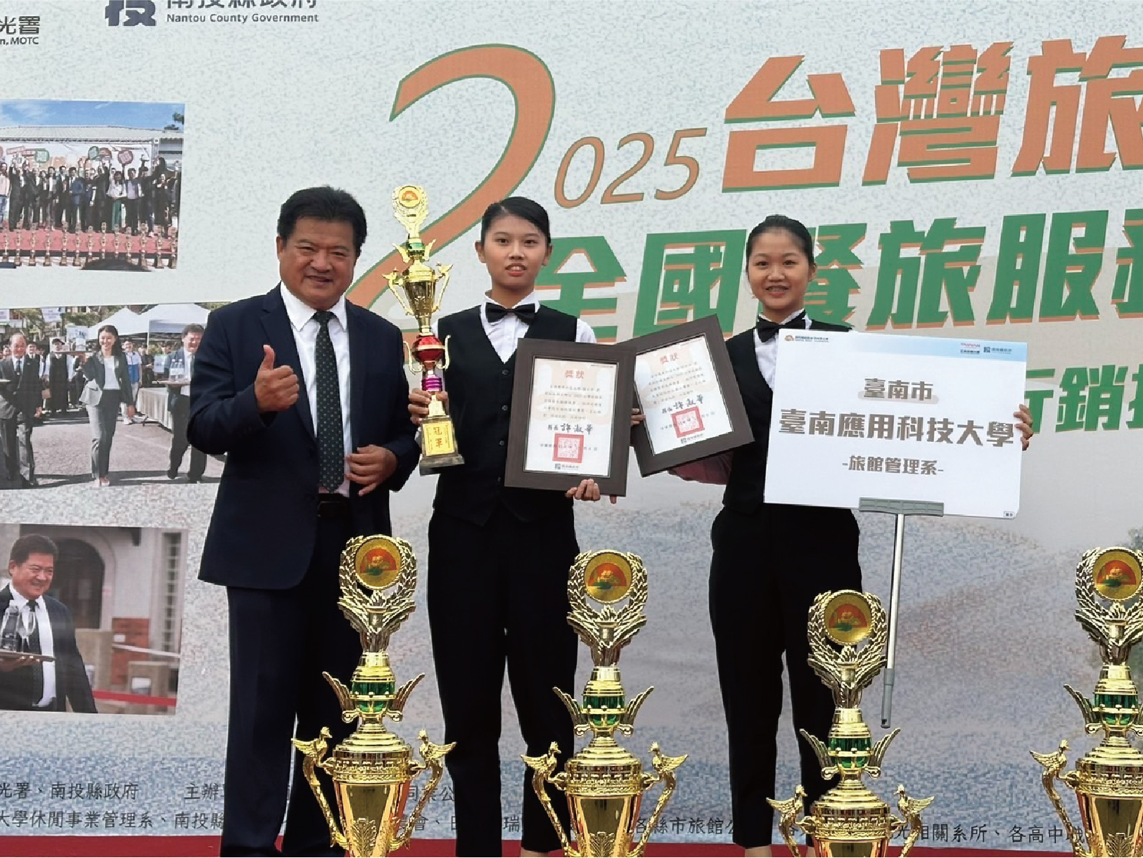 旅館系學生參與脊梁山脈觀光菁英盃全國遊程設計競賽總決賽,於大專生來台旅客組勇奪全國冠軍,也是第二度在此競賽中獲得冠軍,特別獻獎予校長,感謝學校的指導與支持。