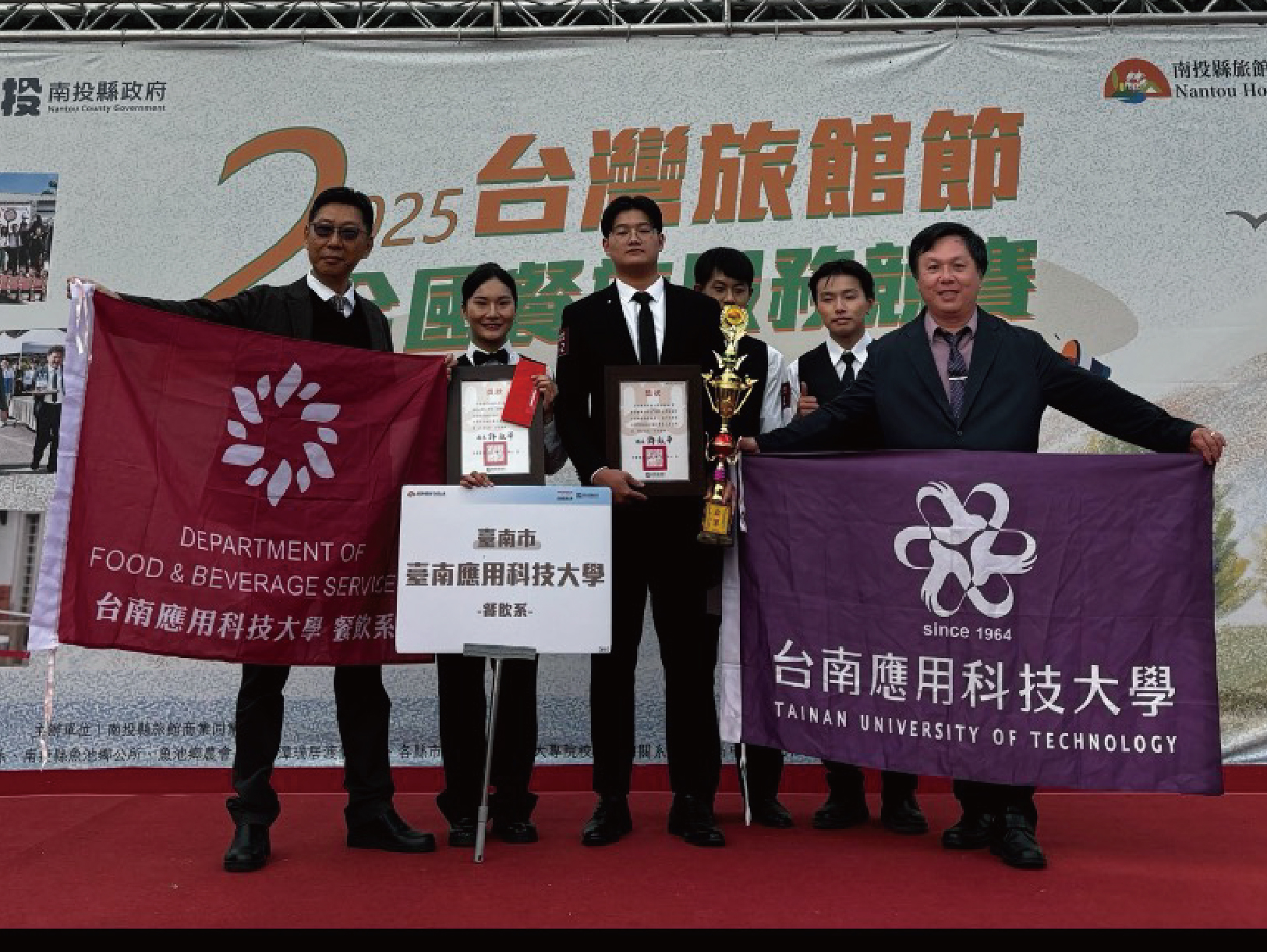 在本次競賽的亮點表現中,南應大餐飲系在多個專業領域均有斬獲。首先是在托盤競賽組持續展現高水準表現,繼蓬萊盃、台灣旅館節摘銀後,成功蟬聯銀牌與銅牌。大一新生的表現亦十分亮眼,不僅在口布摺疊組以永續創意摘銅,更在手沖咖啡組與咖啡杯測賽中初露鋒芒,分別拿下銀牌與銅牌。